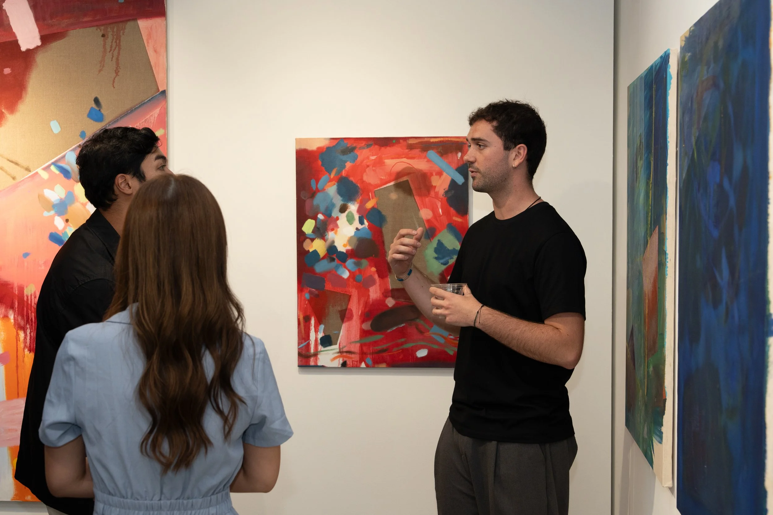 Daniel Roibal, born in 2001 in Palma de Mallorca, Spain, is a contemporary artist known for his abstract paintings that invite contemplation and reflection. He earned a BA in Fine Arts from Chelsea College of Arts in 2024 and is currently pursuing an MA in painting at the Royal College of Art in London. Roibal's artistic vision is deeply influenced by his experiences with nature, particularly the Japanese practice of Shinrin Yoku, or forest bathing, which emphasises mindful immersion in natural environments. This connection to nature inspires his work, aiming to evoke a sense of interconnectedness and presence. Roibal's paintings are characterised by their dynamic compositions and thoughtful engagement with the natural world, encouraging viewers to immerse themselves in the present moment.
